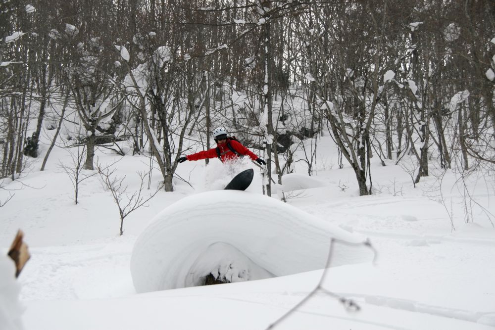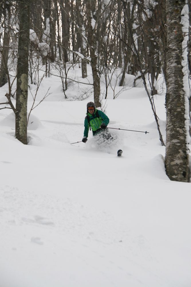 タイトなツリーもパウダーがあれば安心だし、地形の変化を楽しむことができるこのエリアは何度行っても飽きることがなく、その日、その日のコンディションでサムシングニューに出会うことができるわけです。