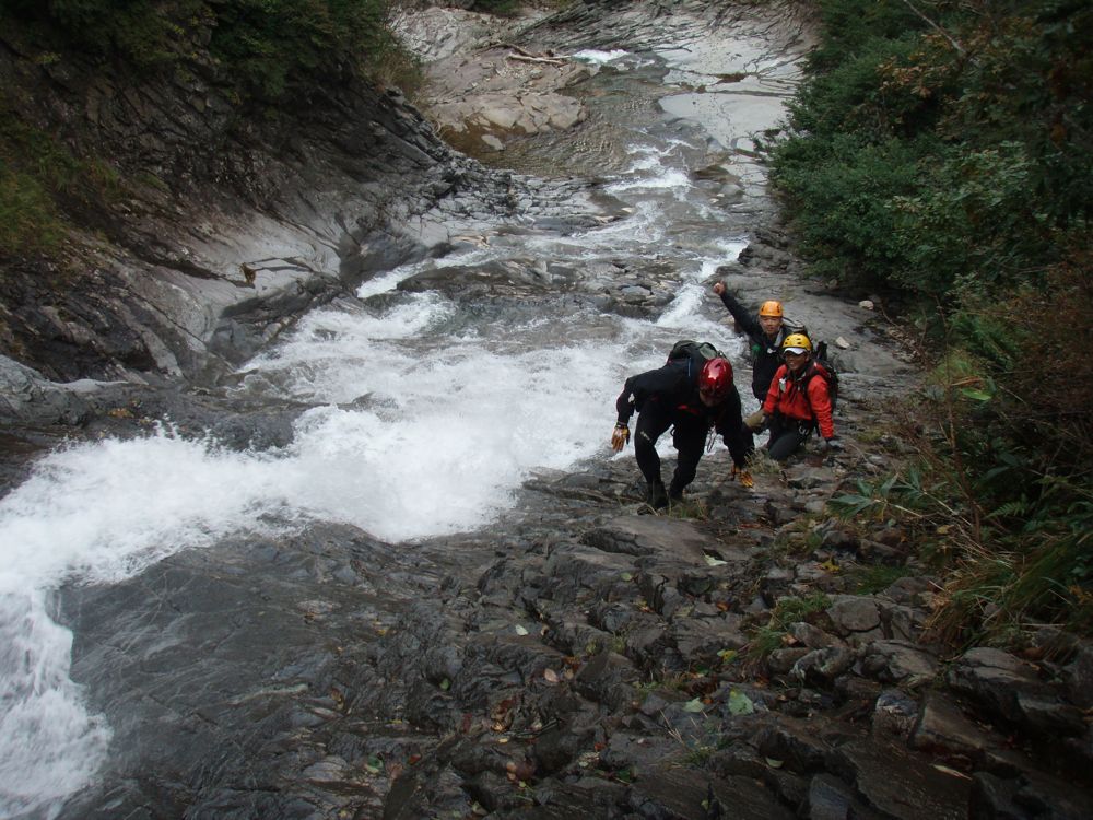 沢登りとしては、技術的には初級コースですが、高低差がある分行動時間が長くなるので、体力に余裕が必要です。